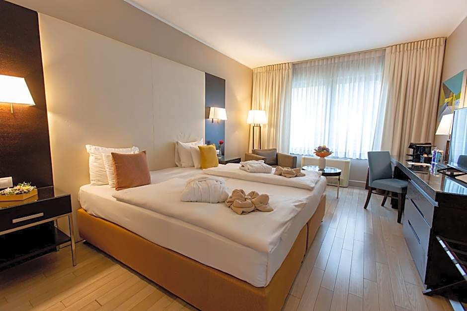Superior Double or Twin Room Featuring a modern décor, this bright and spacious room has saisonal air conditioning and a flat-screen satellite TV. It has 2 beds, which we can split or bedding together for you, a seating area with sofa or armchair.